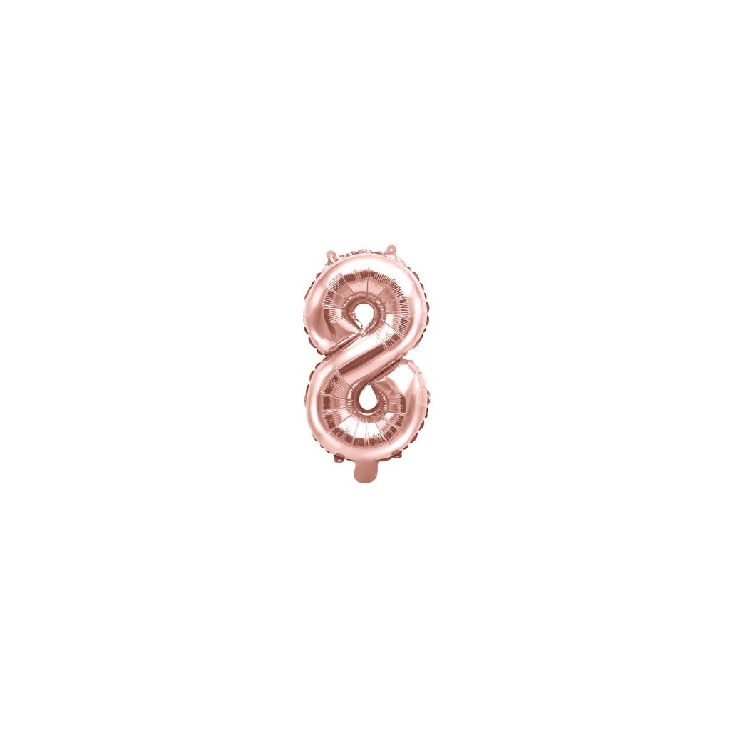 Foliová číslice 8 v rose gold barvě, balonek se díky své velikosti ani po nafouknutí heliem nebude vznášet. Doporučujeme nafouknout pouze vzduchem. Velikost - 35 cmNafukování - vzduchDoplňkové parametry