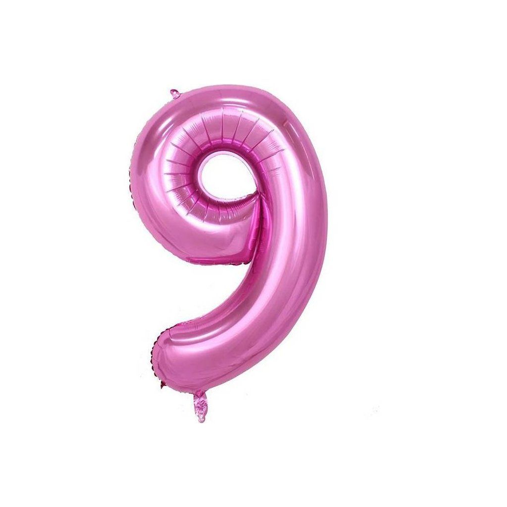 Fóliový balónek číslo 9, růžový, 102 cm.Doplňkové parametry