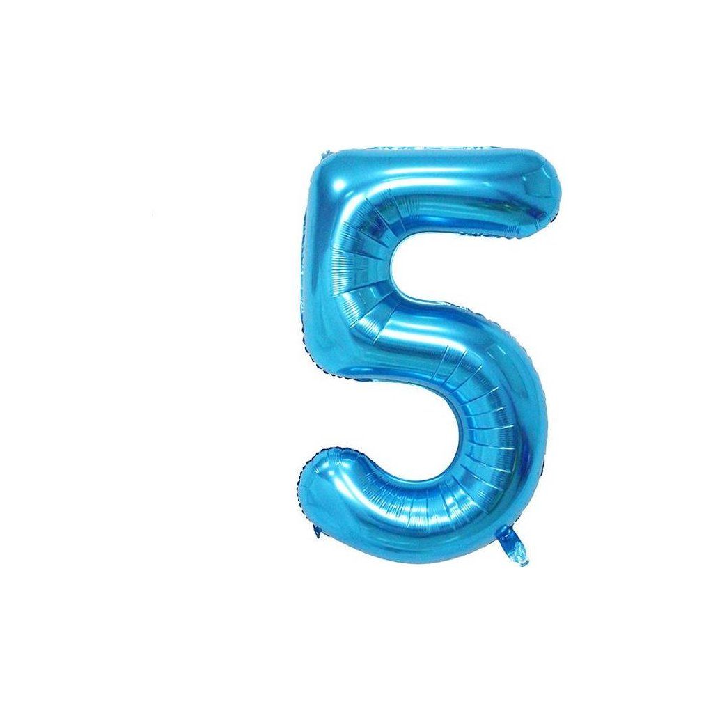 Fóliový balónek číslo 5 modrý, 102 cm.Doplňkové parametry