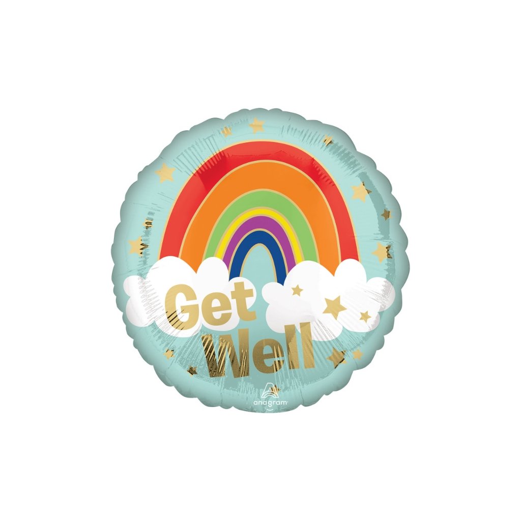 Foliový balonek bílý s duhou a nápisem Get Well, který můžete použít například jako dekoraci při oslavě nebo jako dárek pro oslavenkyni. Balonek lze nafouknout vzduchem i heliem. Při nafouknutí heliem vydrží plně nafouklý cca 3 až 5 dní, poté se začne pomalu vyfukovat. Součástí balení není brčko ani kompresor. Velikost: 43 cm. Balení: 1 ks.Doplňkové parametry