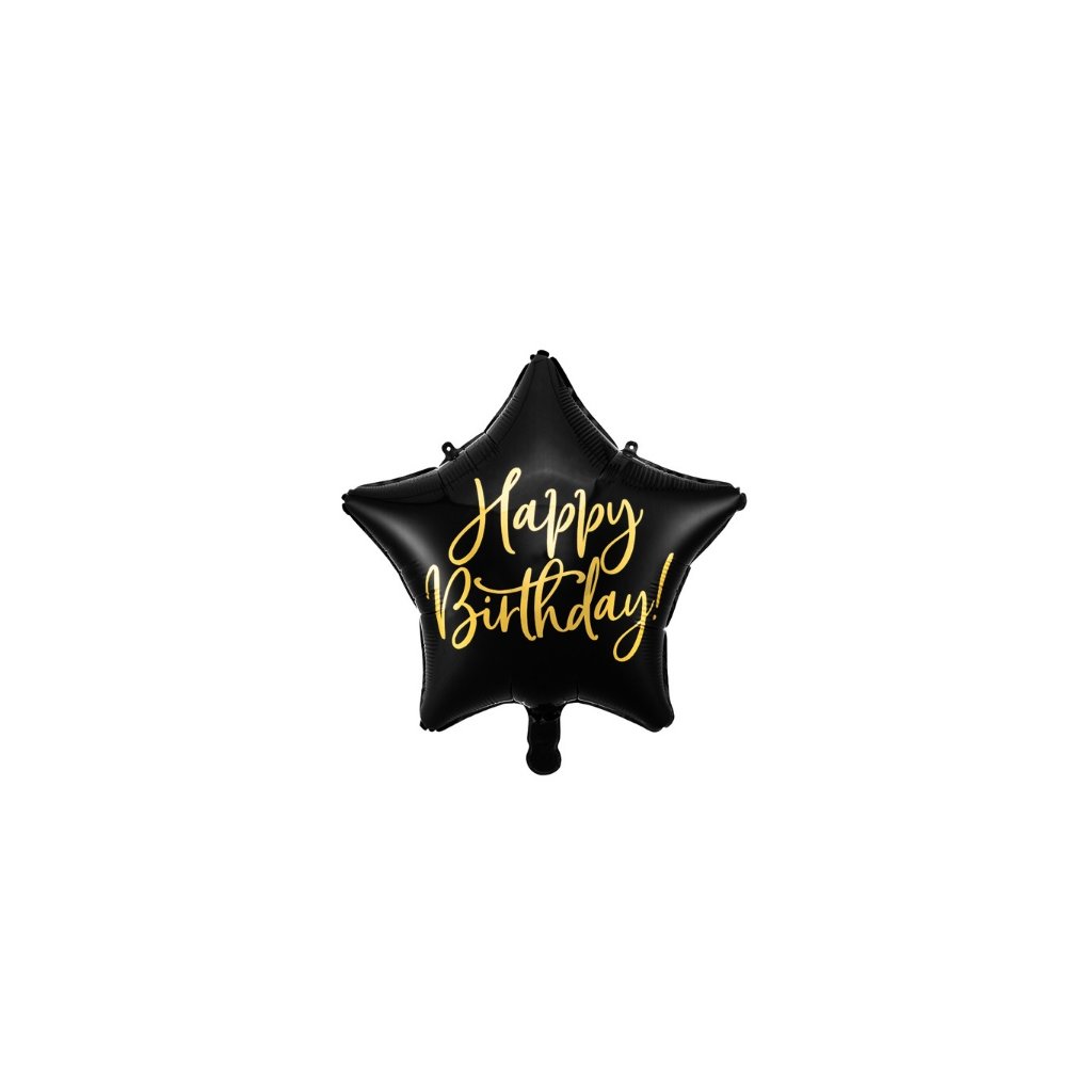 Tvarovaný fóliový balónek v černé barvě opatřený z obou stran nápisem Happy Birthday. Ideální na jakoukoliv narozeninovou party nebo jako doplněk do buketu. Je vhodný k naplnění heliem i vzduchem. Balonek zůstane plně nafouknutý 3 až 5 dní, ale lze jej opakovaně dofukovat přes brčko. Rozměr: 40 cm.Oběm: 15 litrů. Balení: 1 ks.Doplňkové parametry