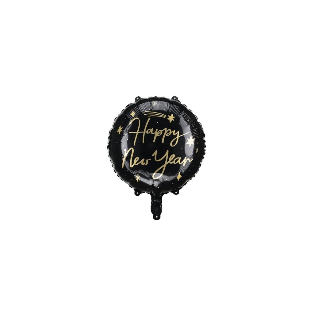 Fóliový balónek Happy New Year v černé barvě s potiskem ve zlaté barvě, velikost před nafouknutím cca. 45 cm. Nafoukněte vzduchem nebo heliem. Sada obsahuje brčko. Balení 1 ksDoplňkové parametry