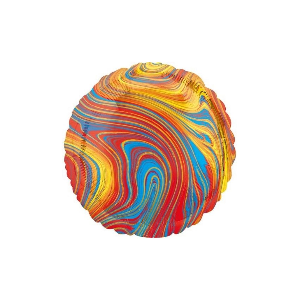 Fóliový balón s mramorovaným efektem. Vybaveno samozavíracím ventilem. Balonek se dá nafukovat héliem (výdrž cca 7 dní). Barva: Pestrobarevná modrá, červená a zlatá. Velikost: 45 cm.Doplňkové parametry