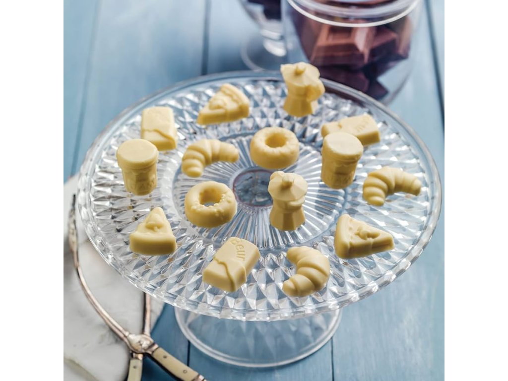 Forma je vyrobena z kvalitního silikonu od prestižní značky Silikomart, která je ověřeným výrobcem nejprodávanějších forem na světě. Je vhodná pro mrazení, pečení i chlazení a je odolná vůči teplotám od -20°C do +220°C. Její vysoká kvalita a výjimečný design jistě ocení každý milovník čokolády a cukrářských výrobků. A co je na ní nejlepší? Obsahuje tvary, které máte rádi u snídaně. Mini čokoládové pralinky, plněné pralinky, čokoládové tvary... možností je nekonečně mnoho.