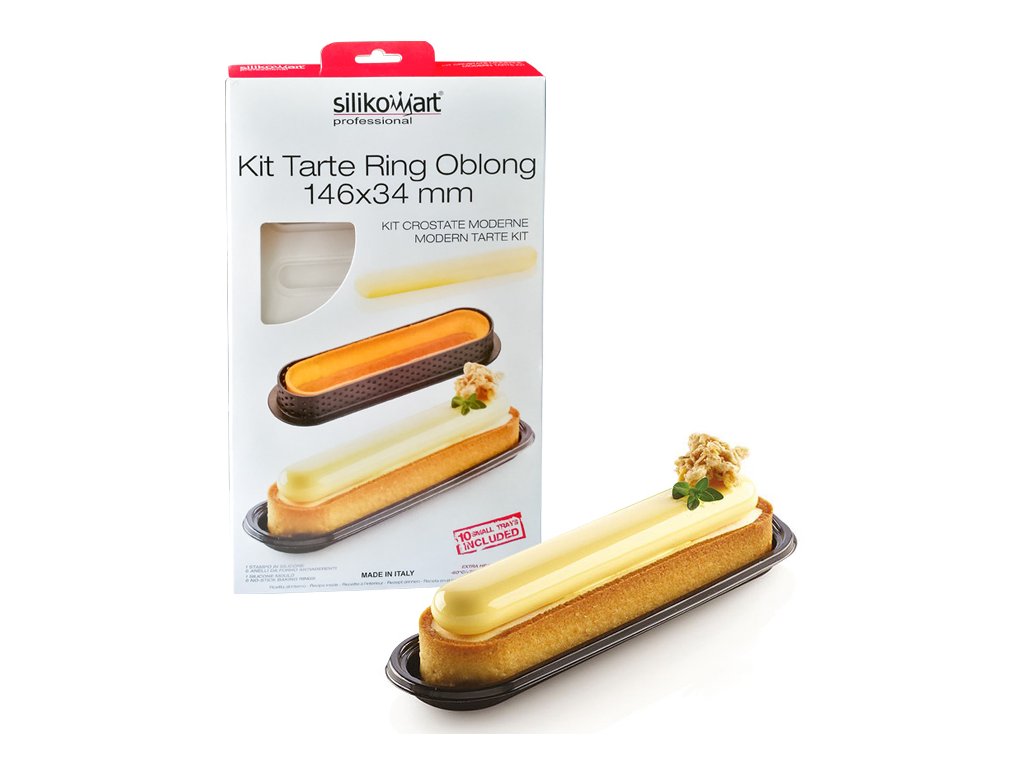 Kit designová silikonová forma s děrovanými dortovými ráfky (6ks) a tácky (10ks) ze speciálně vyvinutého termoplastu série Tarte 4.0. Tento materiál je nedeformovatelný, neoxiduje, je nepřilnavý, nemusí se vytírat máslem, je omyvatelný v myčce. Microotvory umožňují odpařování vlha z výrobku a zůstávají stále čisté. Ráfek je možné použít i jako vykrajovátko.
