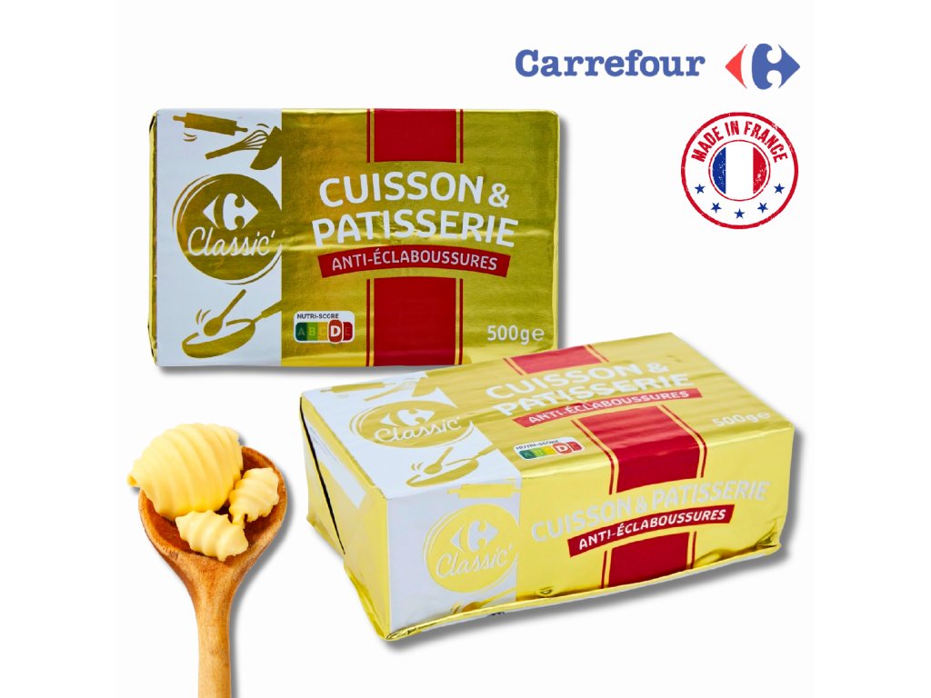 Margarín na vaření a pečení CARREFOUR CLASSIC je nezbytným pomocníkem pro každou kuchyni. S jeho pomocí snadno vykouzlíte jak tradiční, tak moderní pokrmy s bohatou máslovou chutí. Přidejte tento všestranný rostlinný tuk do svého nákupního košíku a vychutnejte si kvalitu francouzské výroby v každém soustu.