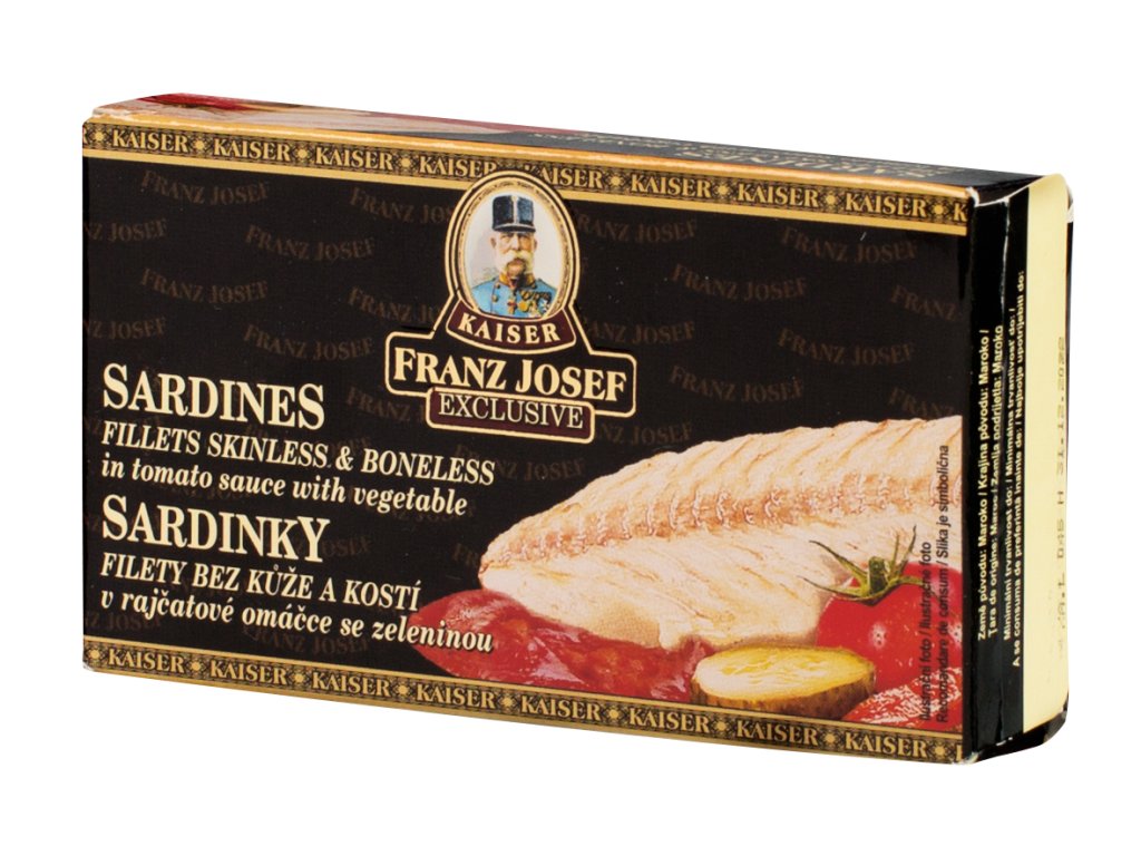 Nakupovat potraviny, drogerii a další potřeby pro domácnost online se vyplatí. Náš online supermarket Terunka.cz, toho má v kategorii: mnohem více. Prohlédněte si celou naší nabídku a ušetřete svůj čas i peníze.FRANZ JOSEF KAISER Sardinky filety v rajčatové omáčce se zeleninou 90 g za skvělou cenu, máme skladem.