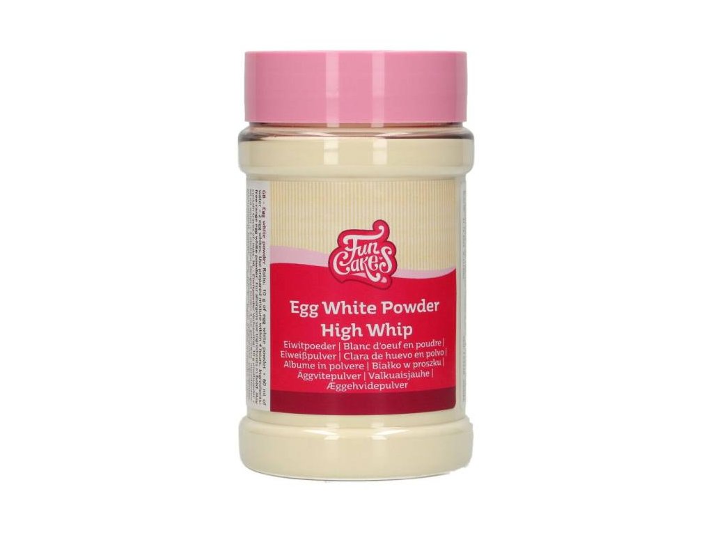 Sušený bílek od FunCakes je ideální náhrada syrových bílků. 10 g prášku smíchaného s 60 ml vody odpovídá 2 bílkům ze středních vajec. Připravenou směs spotřebujte do 4 hodin. Královská glazura: 10 g sušeného bílku, 60 ml vody, 300 - 500 g moučkového cukru (záleží na požadované konzistenci) a kapka citronové šťávy Složení: sušený vaječný bílek 100% Nutriční hodnoty ve 100 g: energie 1600 kJ/381 kcal, tuky 0 g (z toho nasycené 0 g), sacharidy 0 g (z toho cukry 0 g), bílkoviny 84 g, sůl 3,1 gDoplňkové parametry