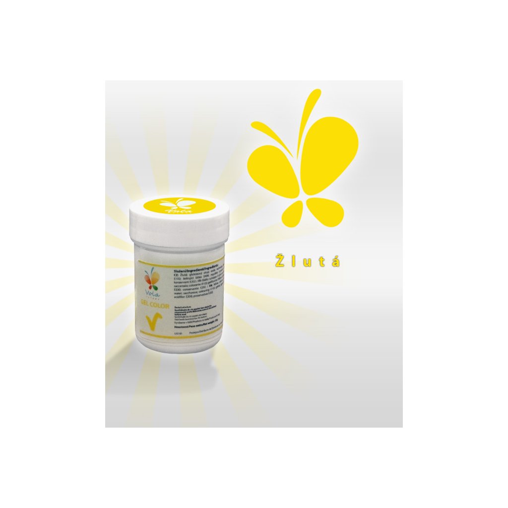 Potravinářská žlutá barva ve formě gelu. Různé barvy je možné smíchat a vytvořit tak nové odstíny.