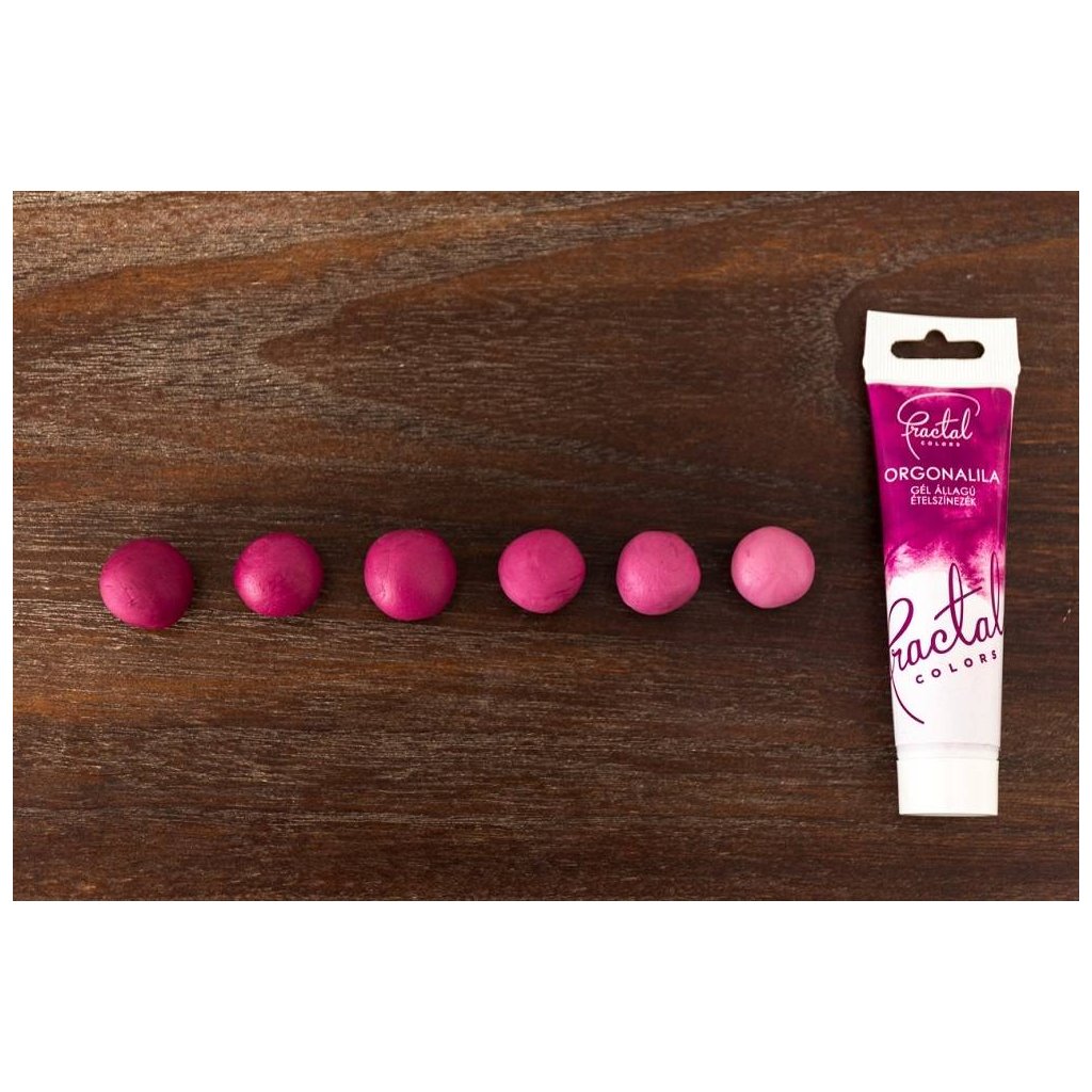 Koncentrovaná gelová barva vhodná na barvení potahovacích hmot, krémů, gelů a těst. Barvu nabíráme v malém množství pomocí párátka (na každé nabrání použijeme nové párátko) a postupně přidáváme, dokud nedocílíme požadovaného odstínu.Složení, co obsahuje produkt - Gelová barva Fractal - Orchid Purple 30 g pro cukrářské účely: