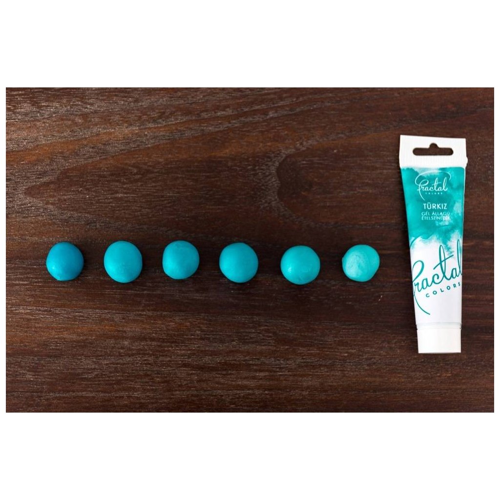 Koncentrovaná gelová barva vhodná na barvení potahovacích hmot, krémů, gelů a těst. Barvu nabíráme v malém množství pomocí párátka (na každé nabrání použijeme nové párátko) a postupně přidáváme, dokud nedocílíme požadovaného odstínu.Složení, co obsahuje produkt - Gelová barva Fractal - Turquoise 30 g pro cukrářské účely:
