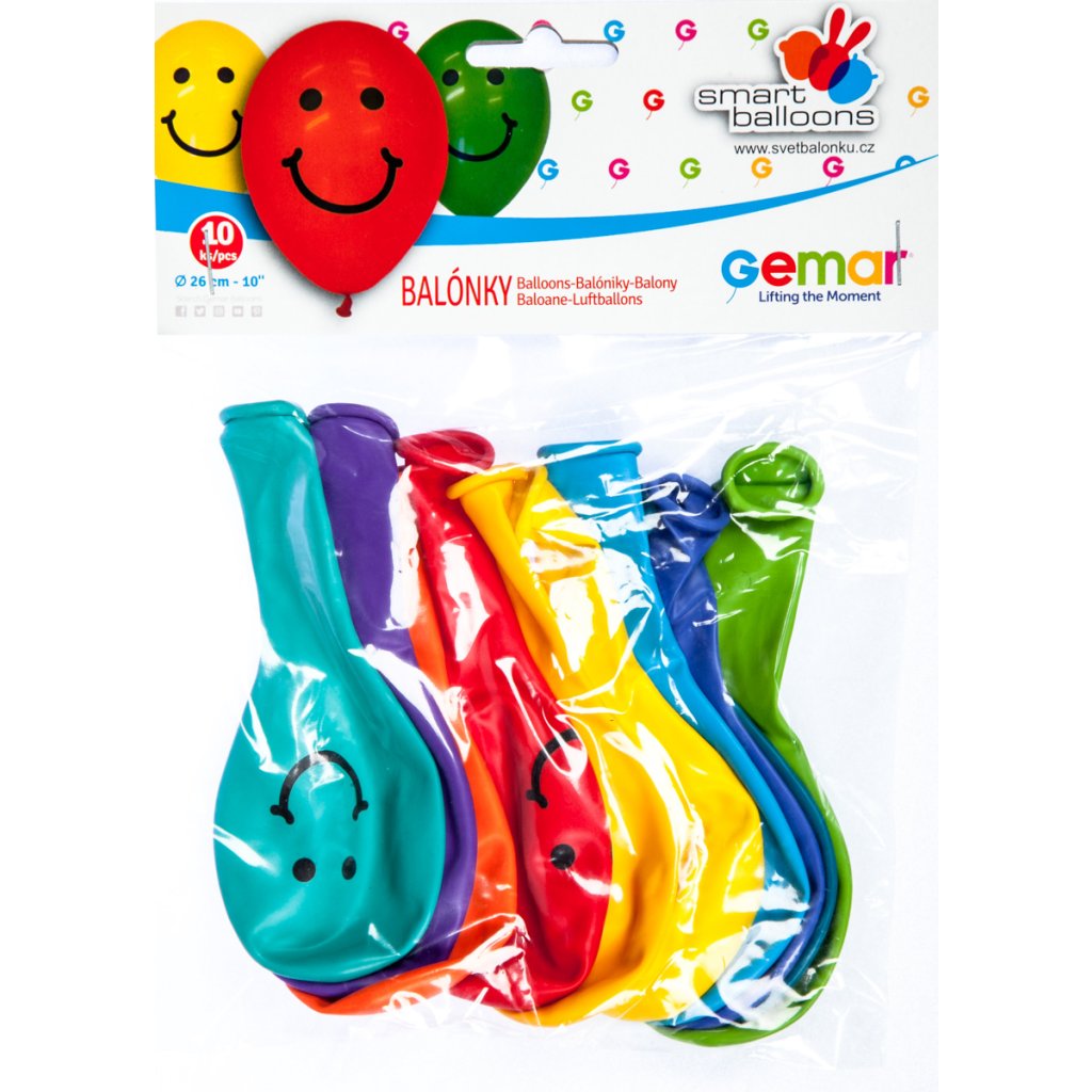 GEMAR Balónek nafukovací 26 cm barevný mix "smajlík" 10 ks