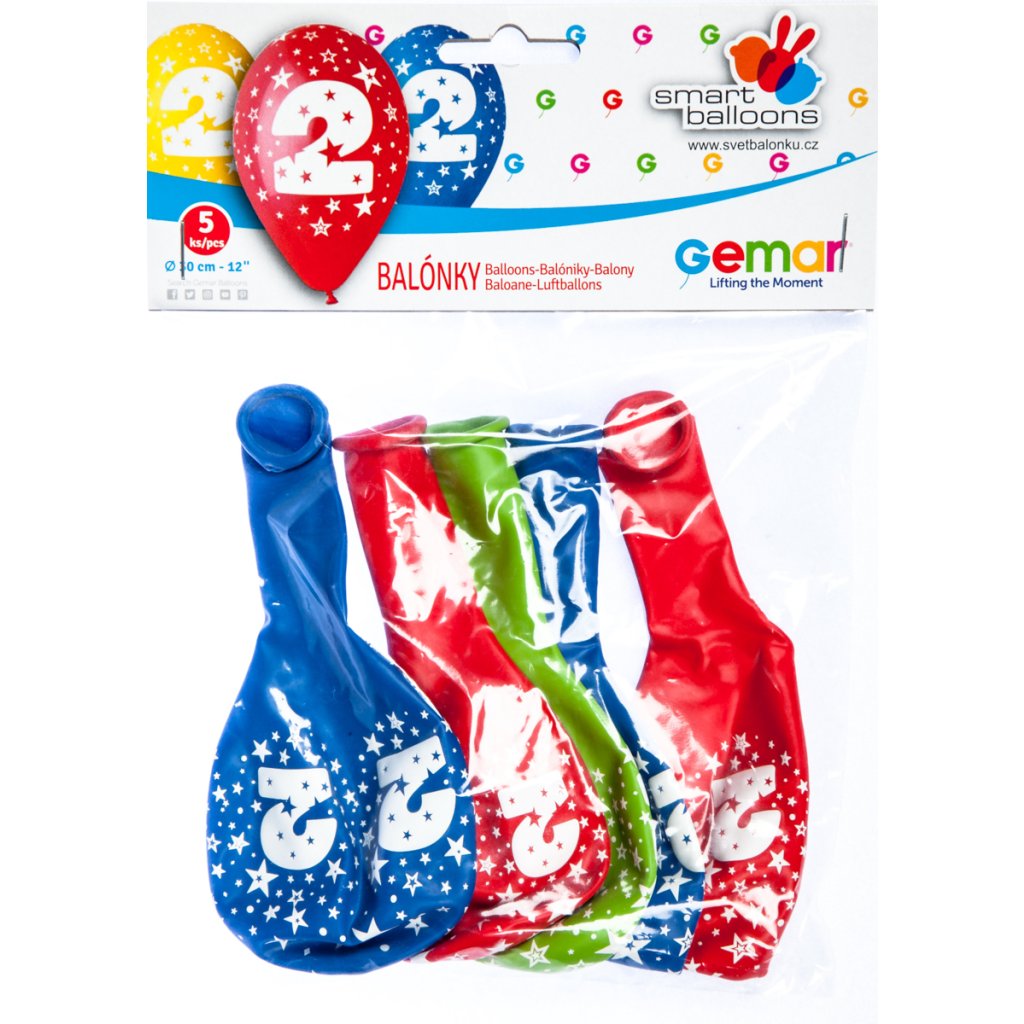 GEMAR Balónek nafukovací 30 cm "2" mix barev 5 ks