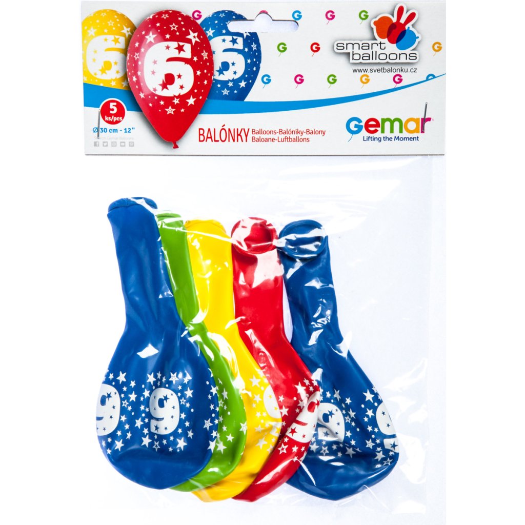 GEMAR Balónek nafukovací 30 cm "6" mix barev 5 ks