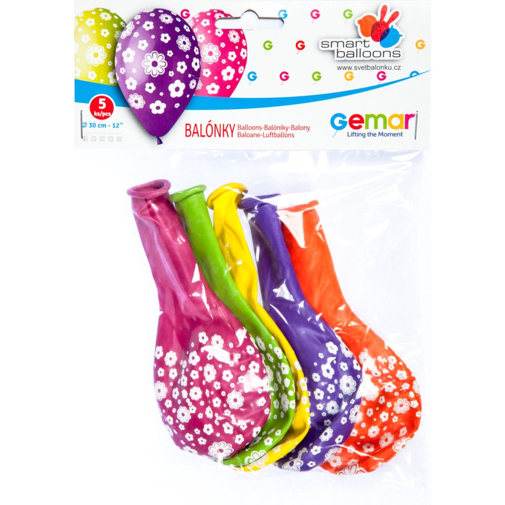 GEMAR Balónek nafukovací motiv květin 30 cm 5 ks