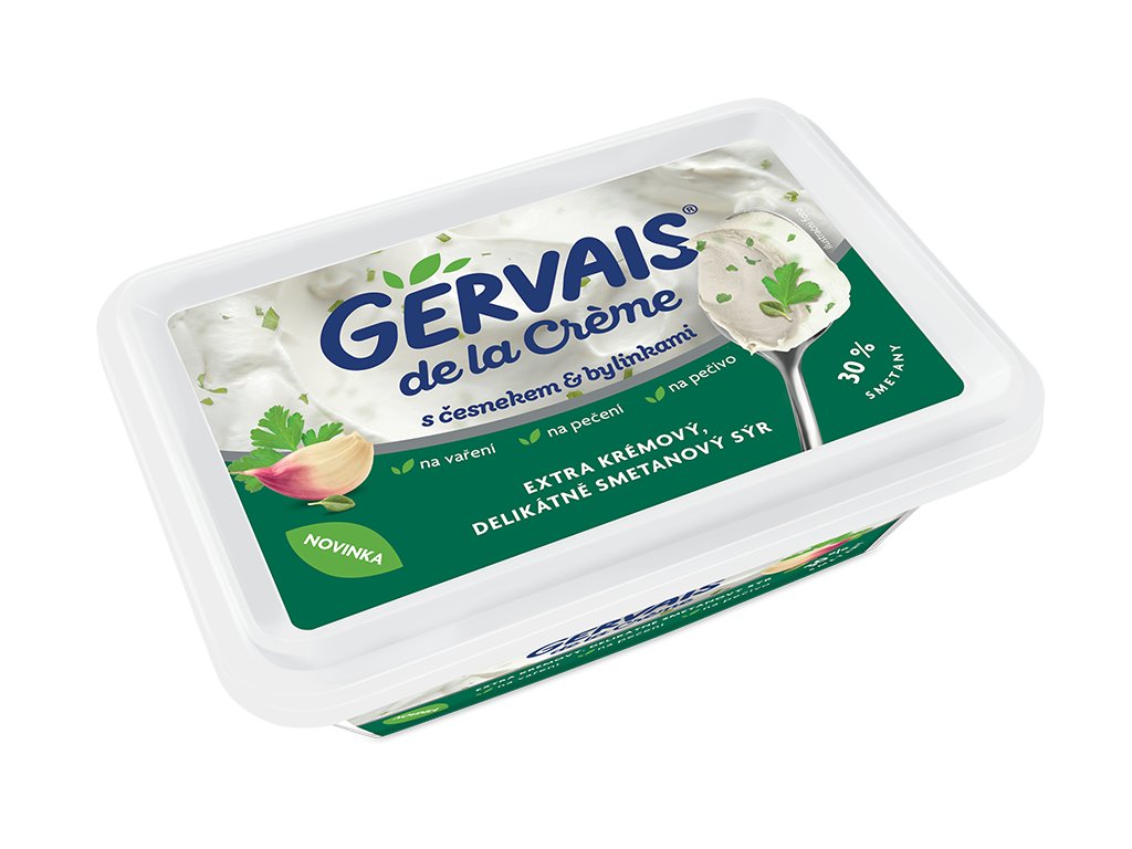 - Pasterovaný, vysokotučný měkký nezrající sýr s česnekem a bylinkami.