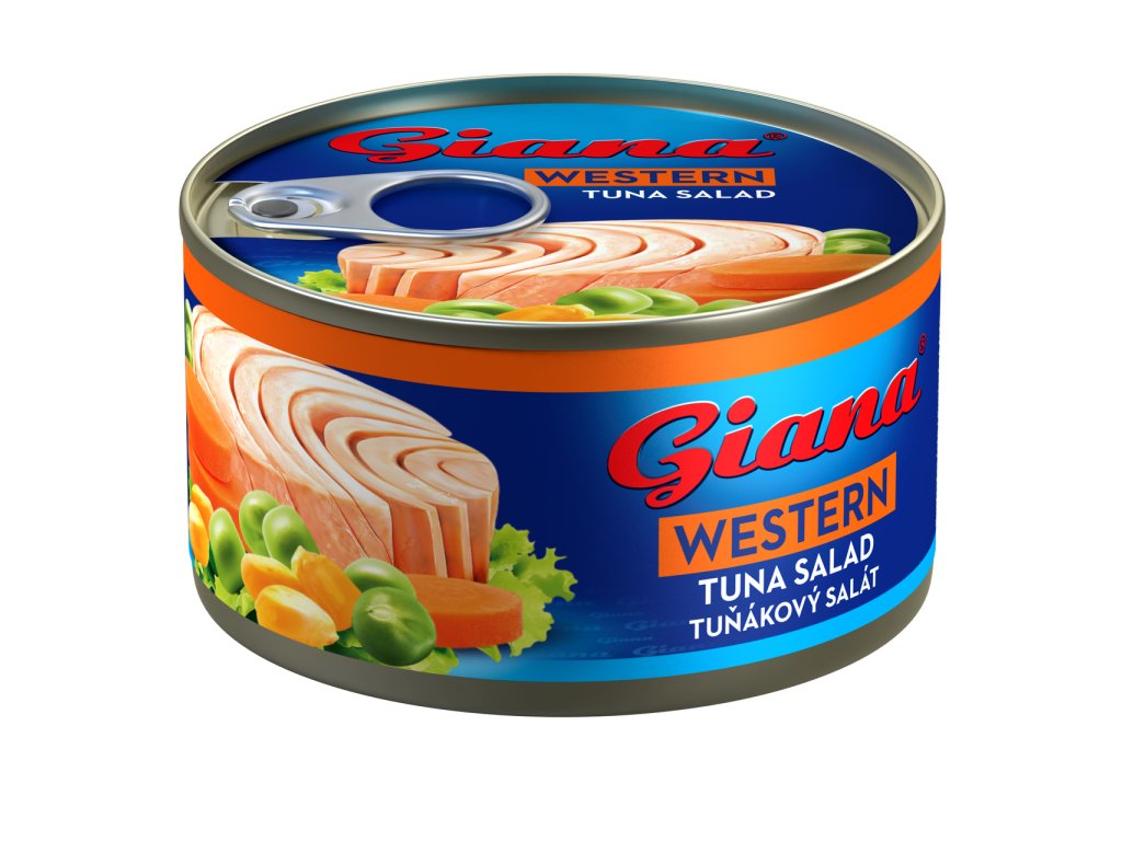 - Tuňákový salát WESTERN. Sterilovaná konzerva. Bez přidaných konzervantů.