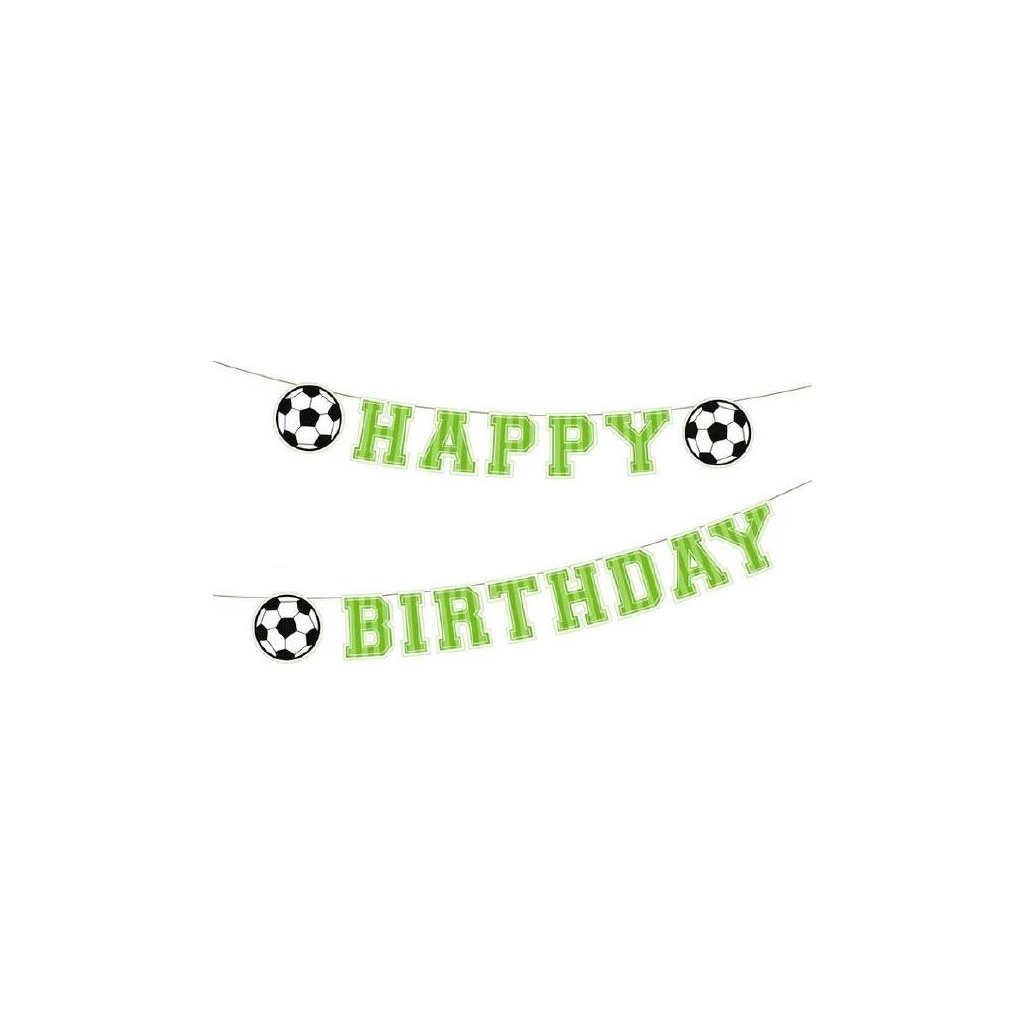 Girlanda papírová fotbal Happy Birthday. Rozměry 250 x 16,4 cm.Doplňkové parametry
