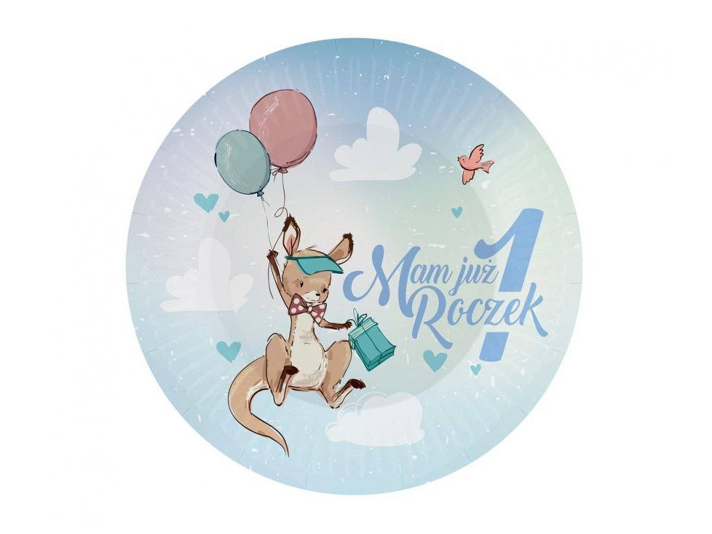 Godan papírové talíře 1. narozeniny s klokanem (6 ks) ▹