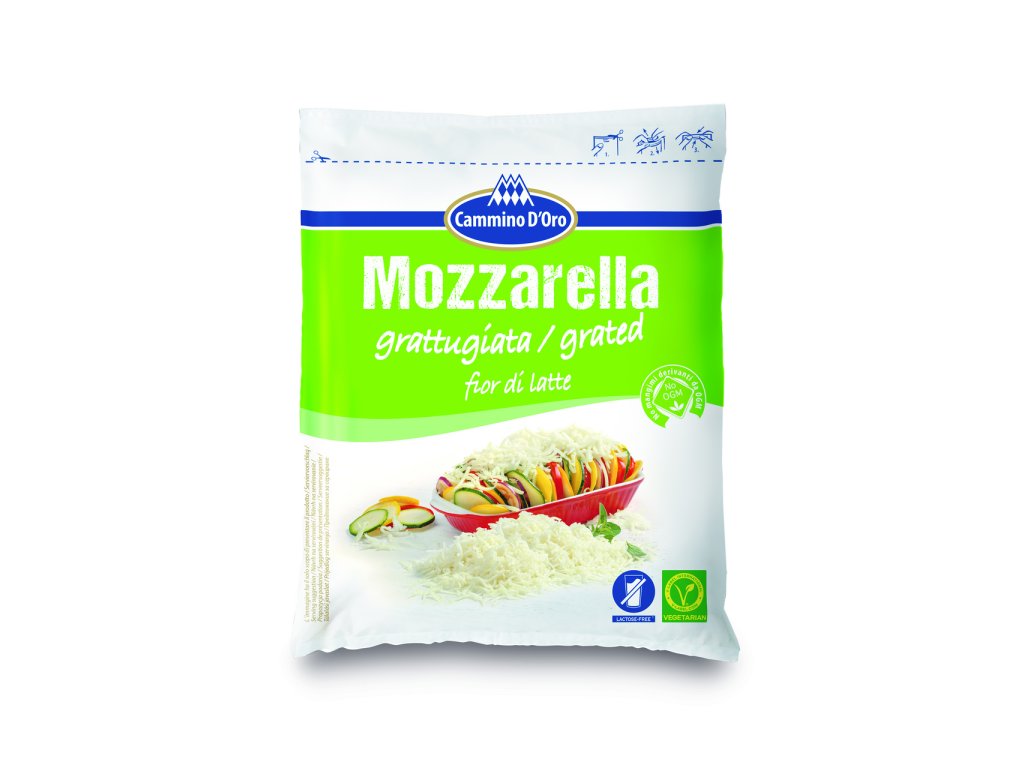 - Mozzarella, sýr přírodní, strouhaný s přídavkem škrobu proti vzniku hrudek.Obsah tuku v sušině 45 %, obsah sušiny 53,5 %.