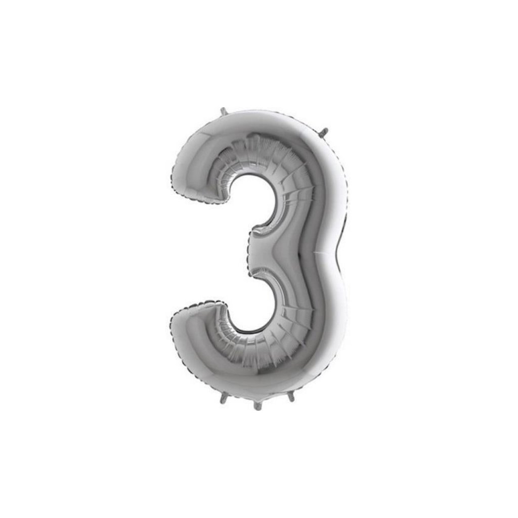 GRABO Balónek číslice "3" stříbrná 102 cm fólie 1 ks /BP