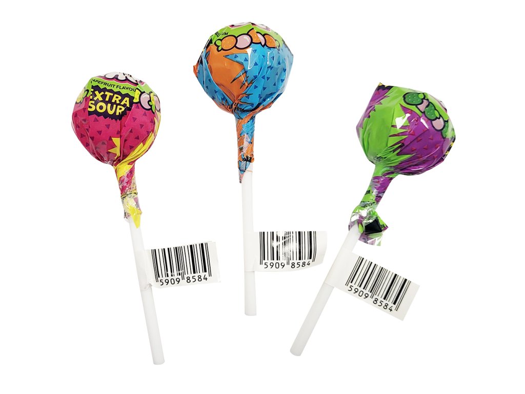 - Lízátko s ovocnou extra kyselou příchutí se žvýkačkou
