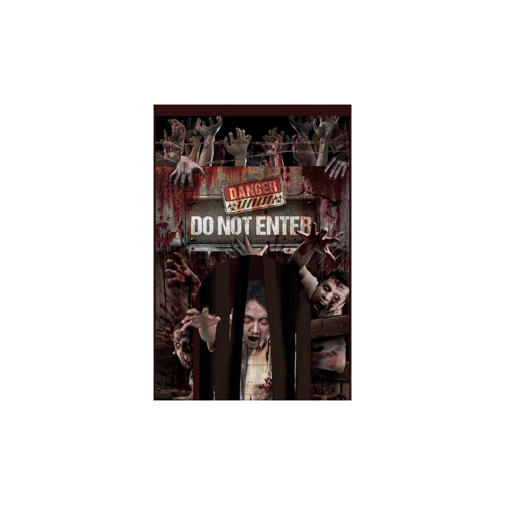 Halloweenská dekorace na dveře se závěsem - Zombie. Tato dekorace je vhodná na halloweenský večer nebo jinou strašidelnou akci. Dodá vašemu vstupu temnou a tajuplnou atmosféru. Velikost: 145 x 240 cm balení: 1 ksDoplňkové parametry