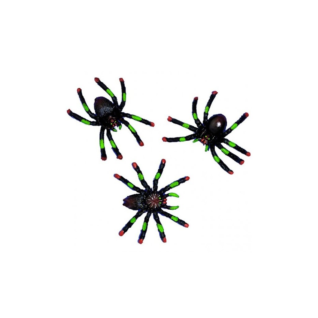 Halloweenská dekorace gumový pavouci, které jsou vhodné na dekoraci například stolu nebo přímo na zem, poté dodají večeru skvělou atmosféru. Velikost: 5 cm. Balení: 8 ks.Doplňkové parametry