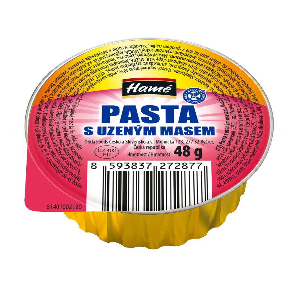 Složení produktu Hamé Pasta s uzeným masem 24 x 48 g:
