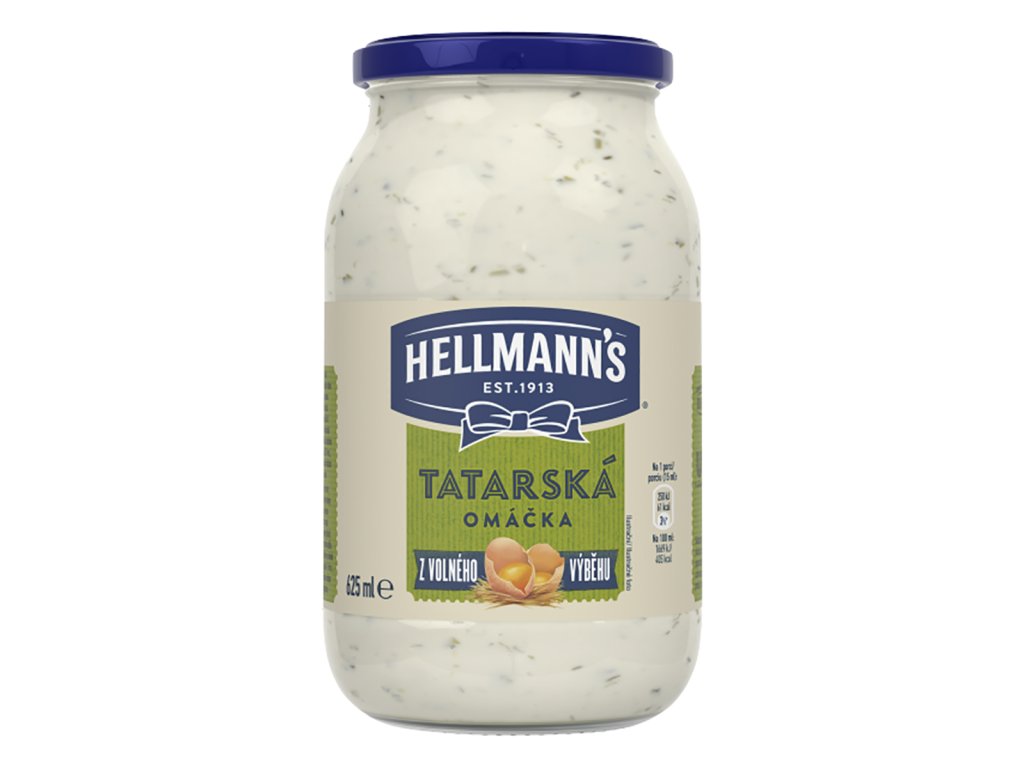- Hellmann's, tatarka, tatarská omáčka, hellmannska, grilování, vejce z volného chovuTatarská omáčka. Studená emulgovaná omáčka. Emulgováno s obsahem tuku 40 % hm.