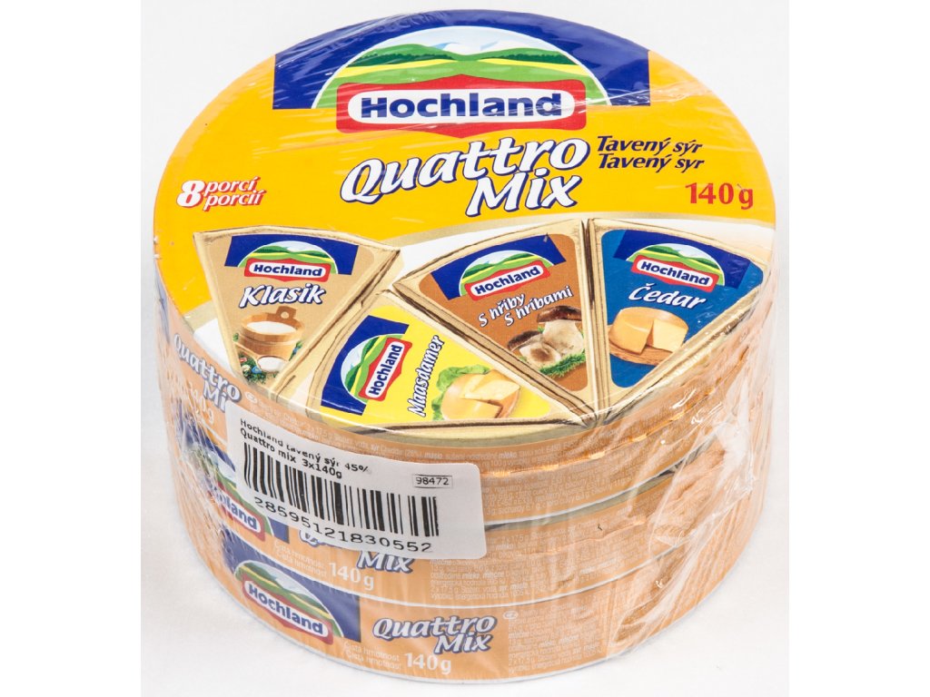 Oblíbený produkt z kategorie: . Hochland Quattro Mix sýr tavený 45% chlaz. 3 x 140 g máme běžně skladem.