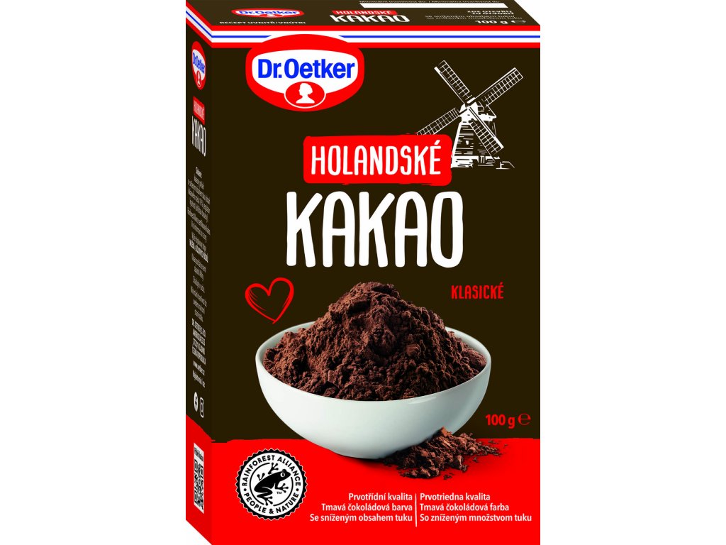 - Holandské kakao Dr. Oetker je prvotřídní kakao zpracované tradičním způsobem. Při této úpravě získává krásnou tmavou barvu a příjemnou čokoládovou chuť. Holandské kakao je nejžádanějším typem kakaa v Evropě. Jeho použití je všestranné: na pečení, na přípravu dezertů a krémů, na posypání sladkých jídel, nebo do nápojů. Vyzkoušejte prvotřídní Holandské kakao Dr. Oetker pro všechny vaše recepty.