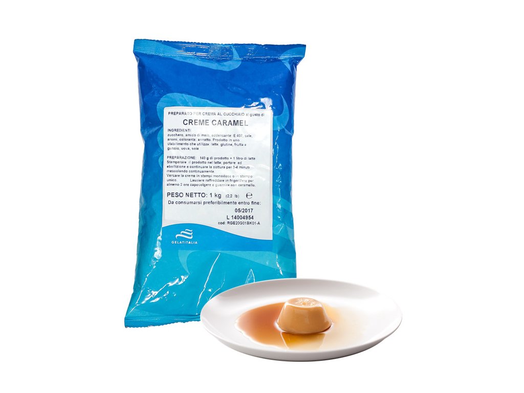 Hotová směs na přípravu creme caramel jemné smetanovo-karamelové chuti. Jednoduchá příprava dezertu, lze dávkovat do formiček nebo kelímků.