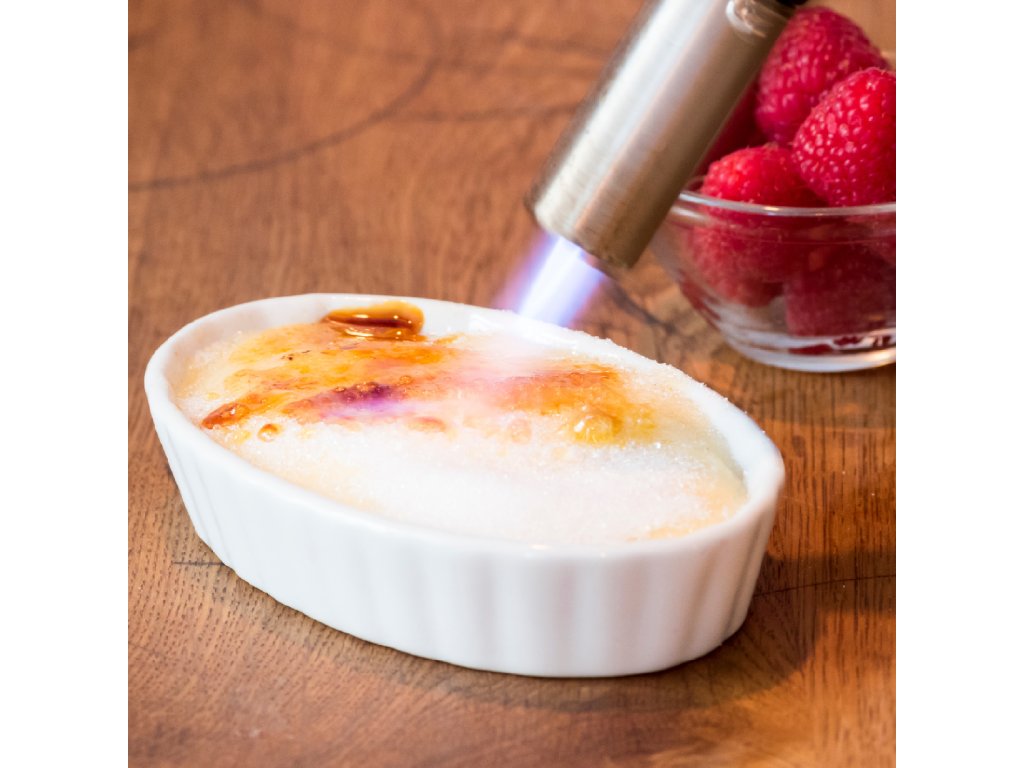 3) Před podáváním posypte třtinovým cukrem a zkaramelizujte flambovací pistolí pro dokonalý křupavý povrch.