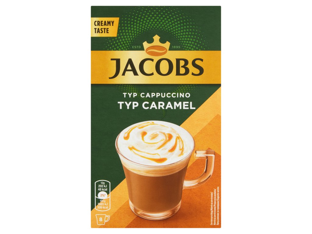 SLOŽENÍ produktu JACOBS Cappuccino Caramel Rozpustný kávový nápoj 8 ks: