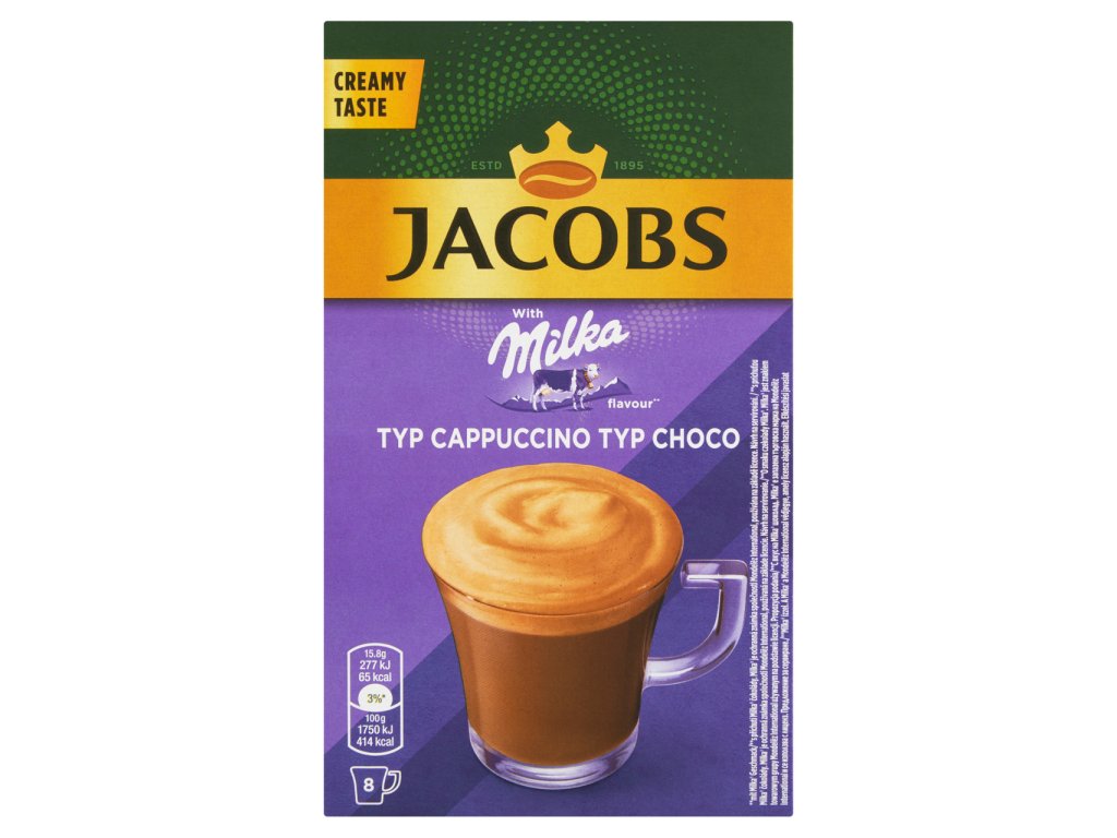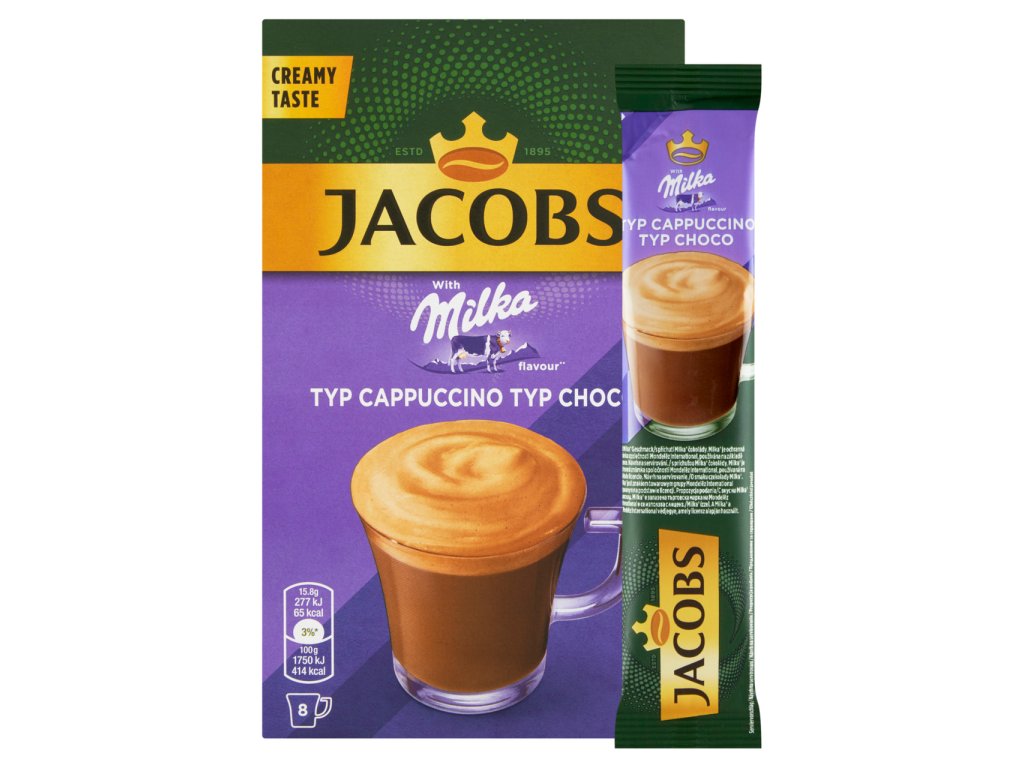 SLOŽENÍ produktu JACOBS Cappuccino s příchutí Milka čokolády 8 ks: