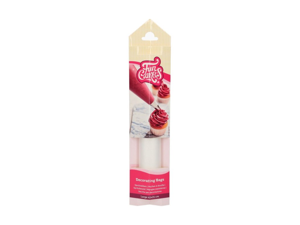 Jednorázové trezírovací sáčky FunCakes jsou vysoce kvalitní a jsou vhodné pro studené, teplé, husté a lehké náplně. Tyto sáčky vyrobené z pružné a protiskluzové fólie jsou ideální pro zdobení dortů. Rozměr: cca 41 x 21 cm Balení obsahuje 10 ks.Doplňkové parametry