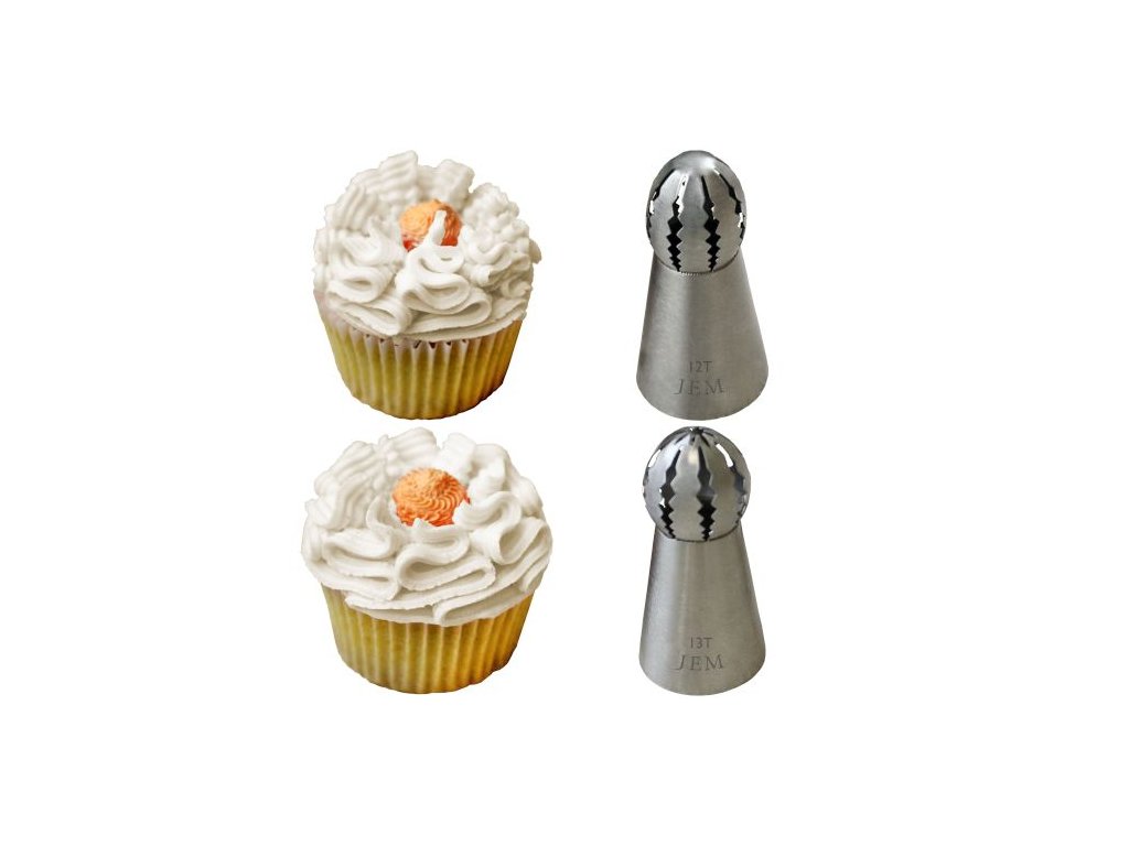 TIP! Trezírovací cukrářské špičky jsou vhodné ke zdobení cupcaků. Jednoduchá manipulace při aplikaci krému - stačí vytlačovat krém a otáčet rukou vlevo, vpravo. Získáme tím nadýchané zdobení s volným místem uprostřed, které následně dozdobíme za pomoci jiné špičky.