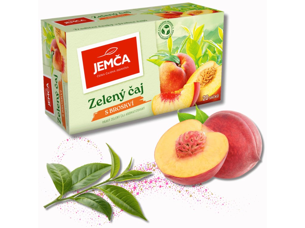 - Zelený čaj s broskví 30g, pravý zelený čaj aromatizovaný (porcovaný v nálevových sáčcích)