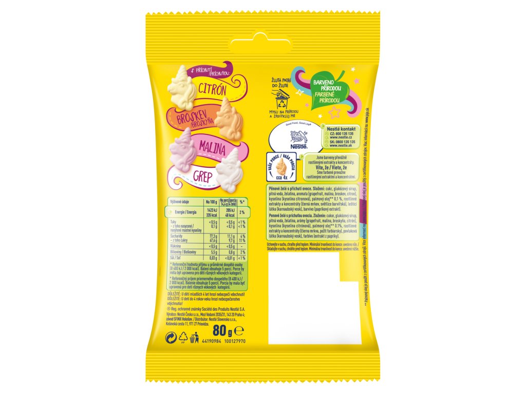 SLOŽENÍ produktu Jojo Jednorožci pěnové želé bonbóny 80 g: