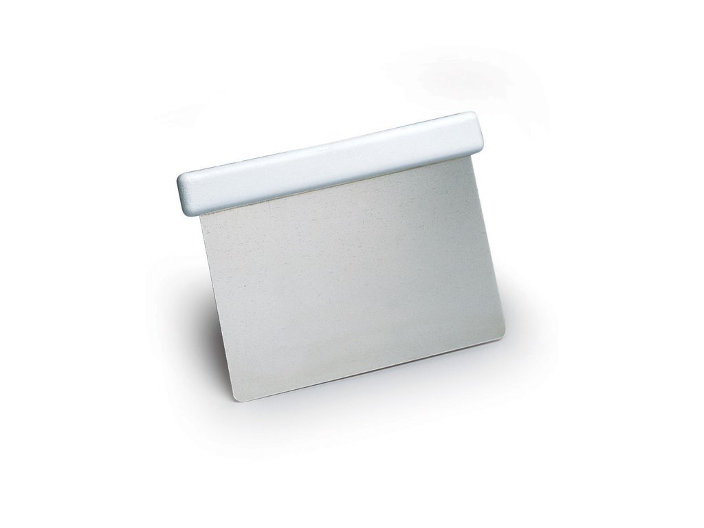 Pružná nerezová karta na stírání čokolády s plastovou rukojetí.