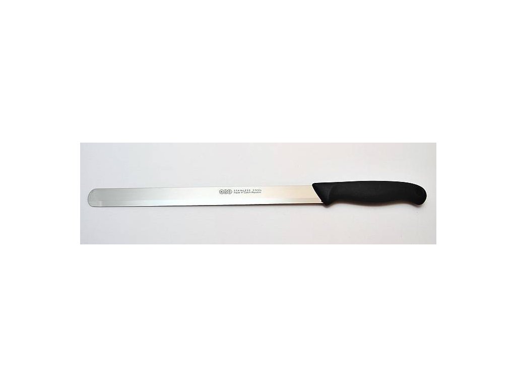 Dortový nůž hladký.Nůž je vyroben z vysoce kvalitní nerezové oceli, rukojet z pevného plastu, který je hygienicky nezávadný a nárazuvzdorný. Je vhodný pro mytí v automatických myčkách.Délka čepele: 22,5 cmCelková délka: 34 cmDoplňkové parametry
