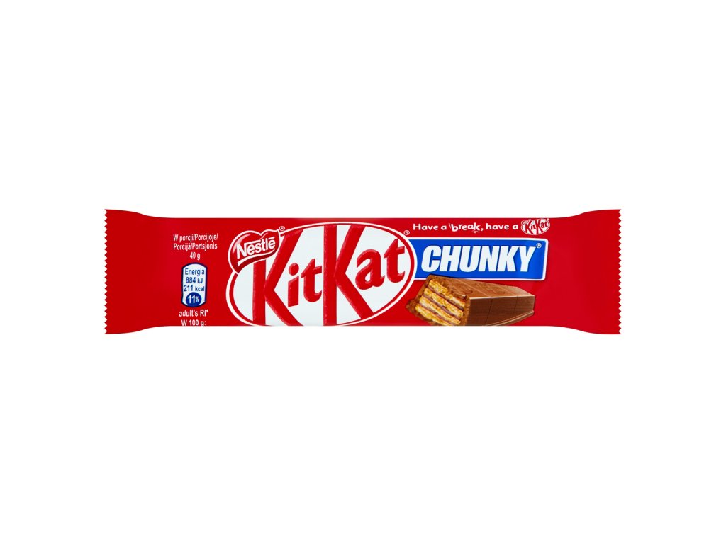 Nakupovat potraviny, drogerii a další potřeby pro domácnost online se vyplatí. Náš online supermarket Terunka.cz, toho má v kategorii: mnohem více. Prohlédněte si celou naší nabídku a ušetřete svůj čas i peníze.KitKat Chunky tyčinka čokoládová 40 g za skvělou cenu, máme skladem.