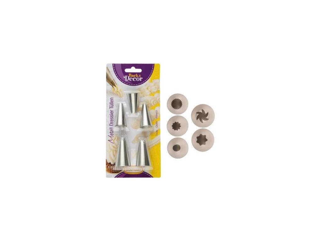 5 druhů zdobících špiček na zdobení dortů, moučníků či cupcakes. V balení 5 různých koncovek.Doplňkové parametry