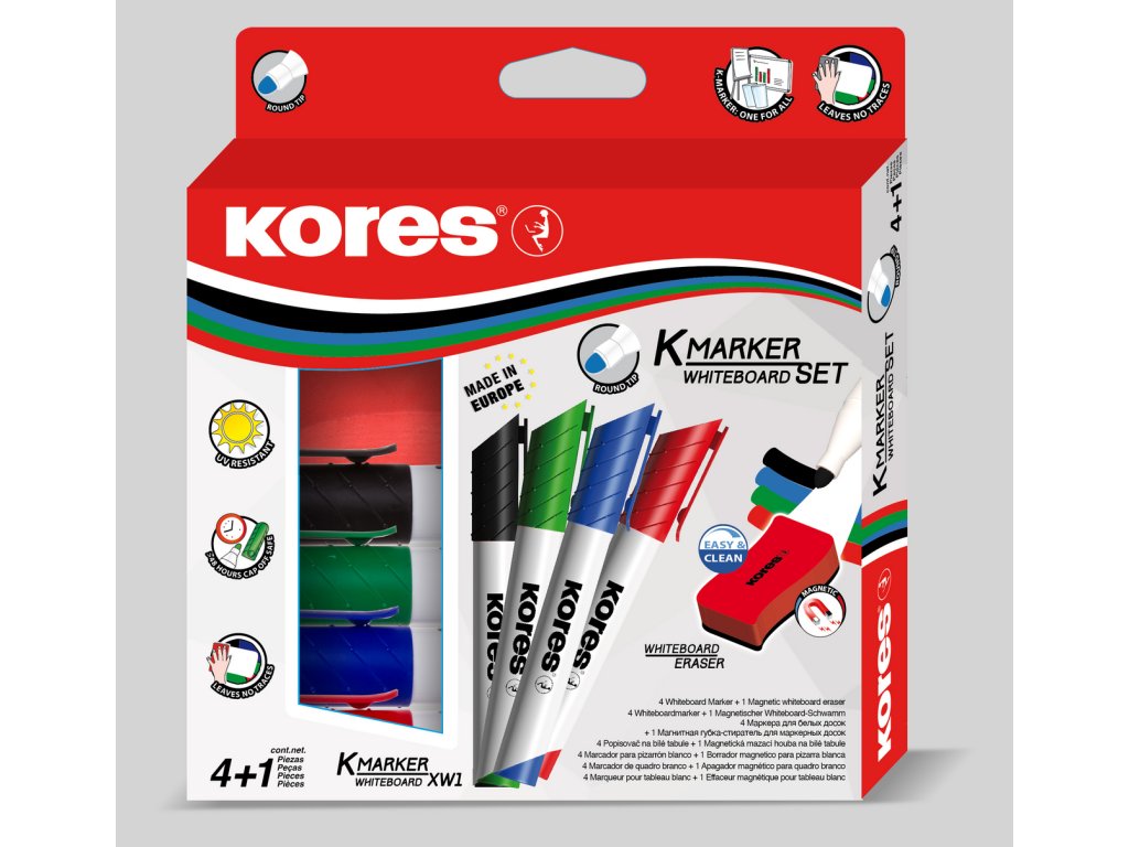 Kores K-M Plus Popisovač na tabule 4 ks + houbička