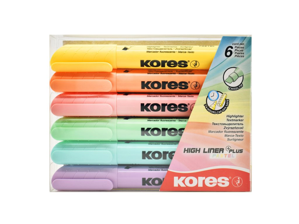 Kores Zvýrazňovač K-M Plus pastel 6 ks