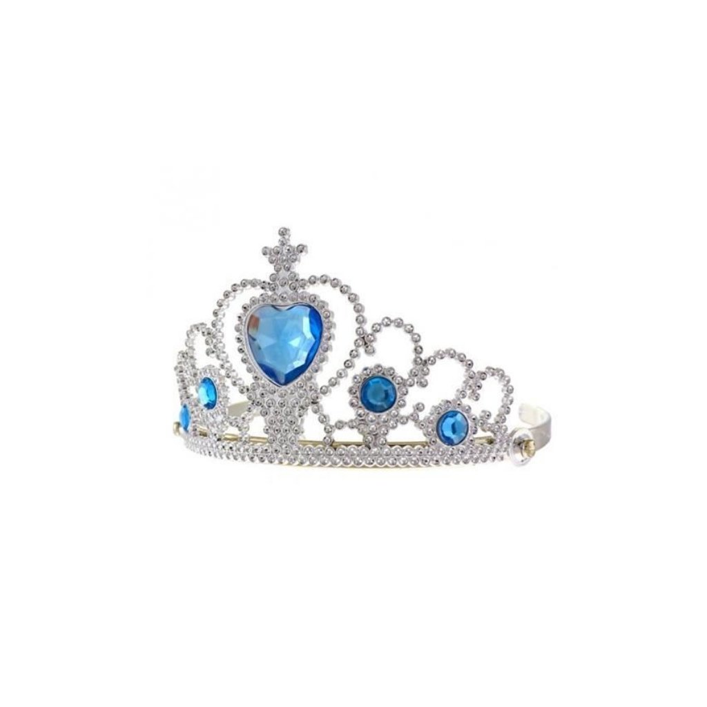 Tato stříbrná korunka s modrými kameny promění každou holčičku v okouzlující princeznu. Je zdobena zářivými plastovými kamínky, kterým dominuje srdce uprostřed, a díky tomu působí pohádkově a elegantně. Skvěle se hodí jako doplněk ke kostýmu na karneval, dětskou oslavu, maškarní ples nebo jako rekvizita pro dětské focení. Díky lehké konstrukci je pohodlná i při delším nošení. Bezpečnostní poznámka: Není určeno pro děti do 3 let. Používejte pod dohledem dospělé osoby. Technické parametry:Barva: Stříbrná s modrými kamenyRozměry: univerzální dětská velikostMateriál: PlastUpevnění: Otevřený oblouk, lehce přizpůsobitelnýDoplňkové parametry