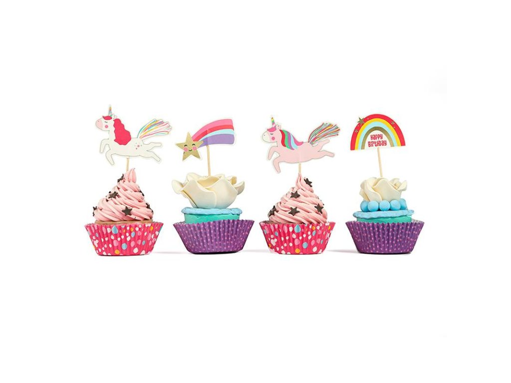 Cukrářské potřeby a suroviny pro sladké pečení.Produkt pro domácí cukráře: Košíčky na muffiny a zápichy Unicorn 24ks zápichů 24 košíčků - Cakesicq ,
