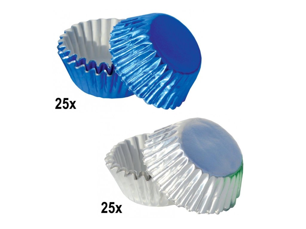 Košíčky na nepečené cukroví, alobalové STŘÍBRNÁ / MODRÁ 50 ks