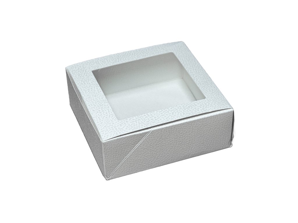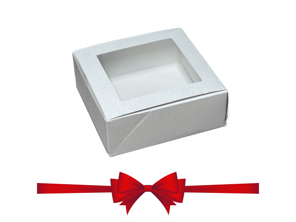 Krabice na cukroví s průhledem 160x160,v.60mm (imitace kůže - bílá)